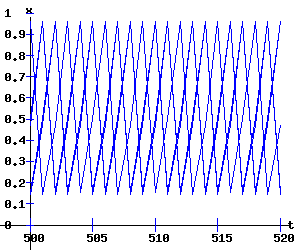 r = 3.845 x1 = 0, x2 = 0.7399 repellers