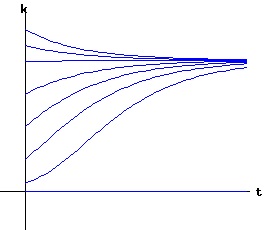 The set of all curves for specific values of xe and k are a one-parameter family of curves in the parameter x0, also called the integral curves of the differential equation (6). Equation (6) could also be considered as a one-parameter family in k, a one-parameter family in xe, a two-parameter family in k and xe, etc.